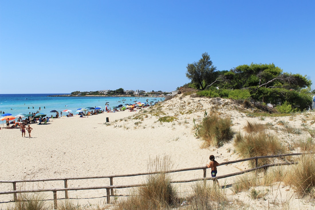 Il paesaggio di Punta Prosciutto è dominato da imponenti dune secolari, che in alcuni punti raggiungono gli otto metri d’altezza e sono ricoperte da una fitta vegetazione mediterranea. La sabbia chiara si tuffa in un mare limpidissimo, i cui fondali bassi e sabbiosi si estendono per decine di metri dalla riva, rendendo la balneazione sicura e piacevole per tutti. Seguendo il profilo della costa, si percepisce un senso di libertà unico, circondati solo dal rumore delle onde e dal profumo del mirto e del ginepro che crescono spontanei.